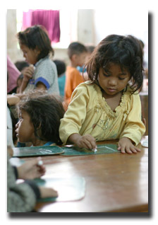 Mith Samlanh's Non Formal Education program is designed to help street living children street working children and very poor children who have never attended school or who have dropped out of school to re/integrate into school. The Educational Center provides children with individualised education which will allow all children to reintegrate into public school at a level appropriate to their age.